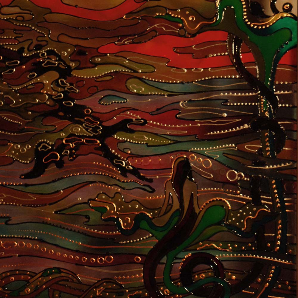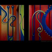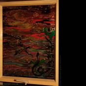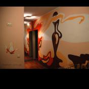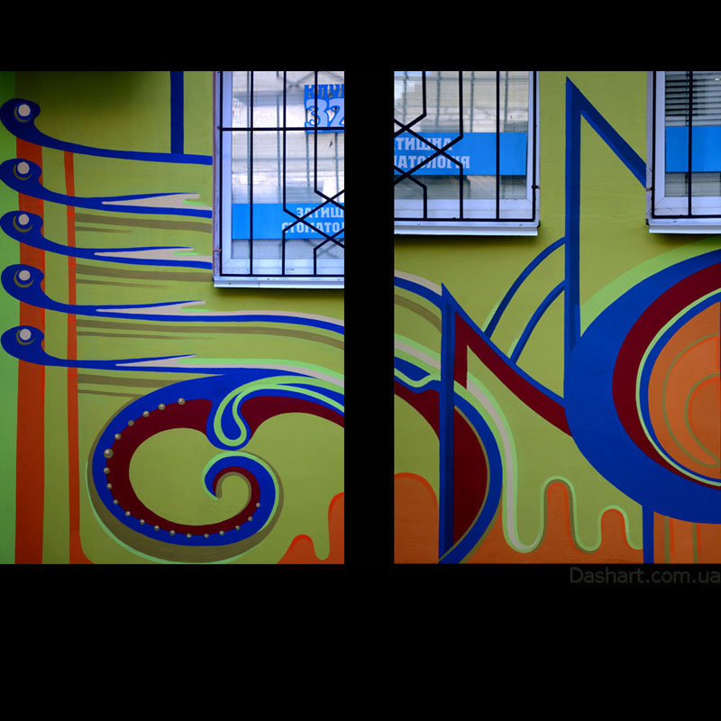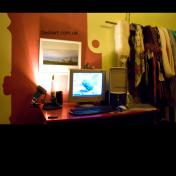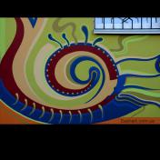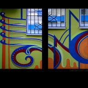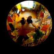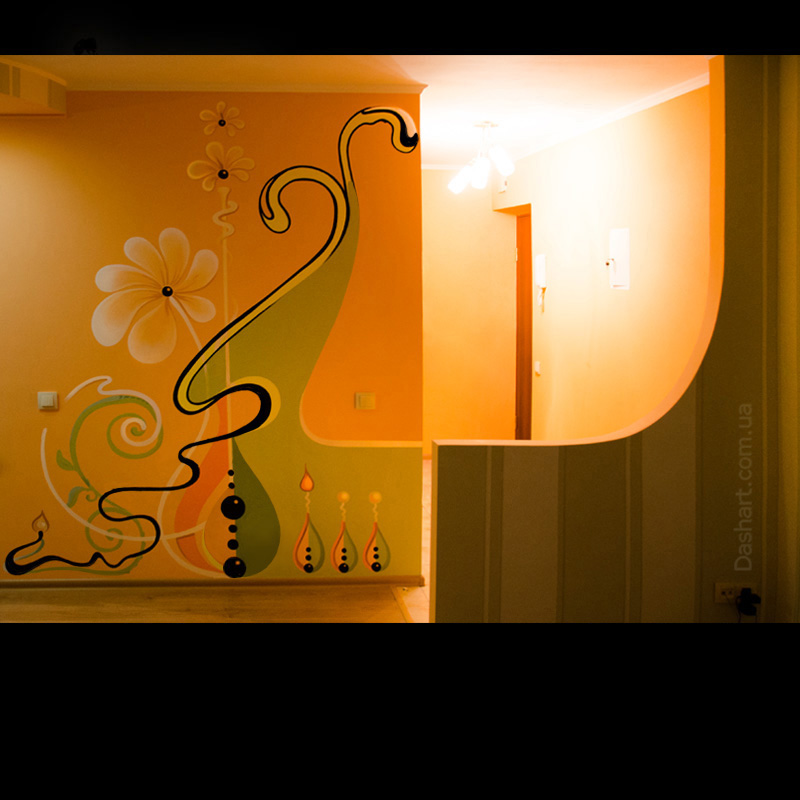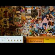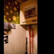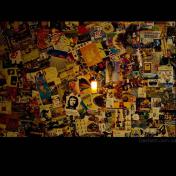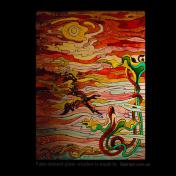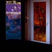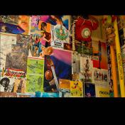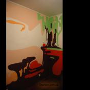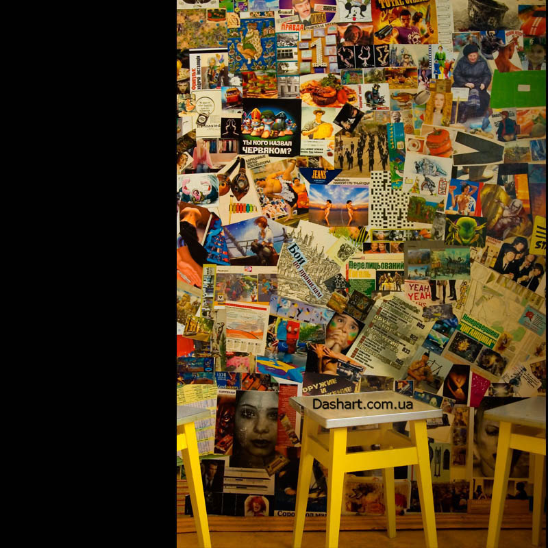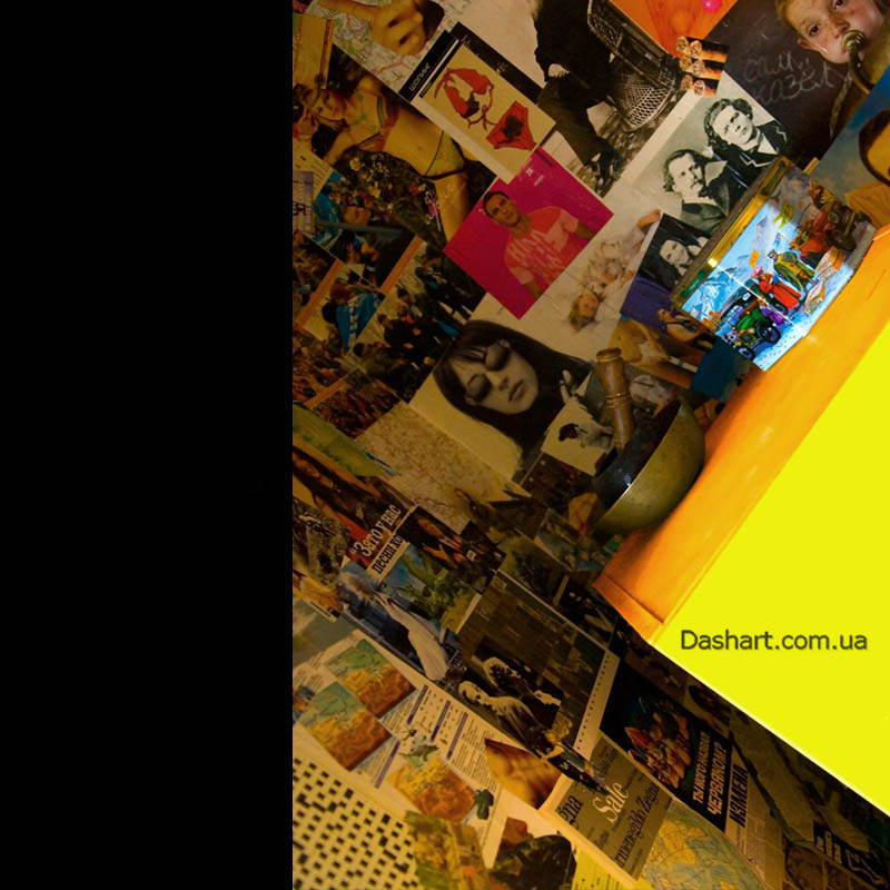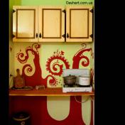 I always get upset by consumerism: people may change everything without buying anything in a constraction store. Just remember: the oldest thing may still get a reincarnation. My kitchen table is sixty years old, it was my Grandpas present to Granma. This family artefact was in miserable condition before it was repainted bright green and red. Nowadays people are levelling ceilings, straightening floors and walls, put the new wallpaper ... and never use their fantasy. Why should the walls be ideally straight and how does it affect your life? One tin of paint may be the solution to all new stains for years to come. Once my guests have burned the linoleum floor with a cigarette ... I've painted a butterfly with a rubber contour, instead of this ugly spot. My kitchen walls are covered with paper clips with memorial dates and photos of relatives and friends. Only you can decide what should hover before our eyes while you drink tea or wash your dishes. Pizza delivery leaflets and taxi telephones fitted the collage all right ...